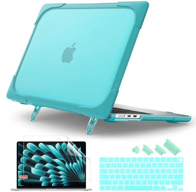 MILITARY-GRADE HYBRID ARMOR- A true heavy-duty hybrid fortress built for users who carry their MacBook everywhere. Features a scratch-resistant matte PC back paired with a thick, shock-absorbing TPU bumper. Reinforced Airbag corners disperse impact from real-world drops, backpack pressure, and daily accidents protection designed to survive travel, not just desk use. ^^ ALL-IN-ONE ERGONOMIC WORKSTATION Ditch your bulky metal stand. The built-in Invisible Foldable Kickstand raises your screen to a comfortable eye level, reducing neck strain during long work, study, or coding sessions.