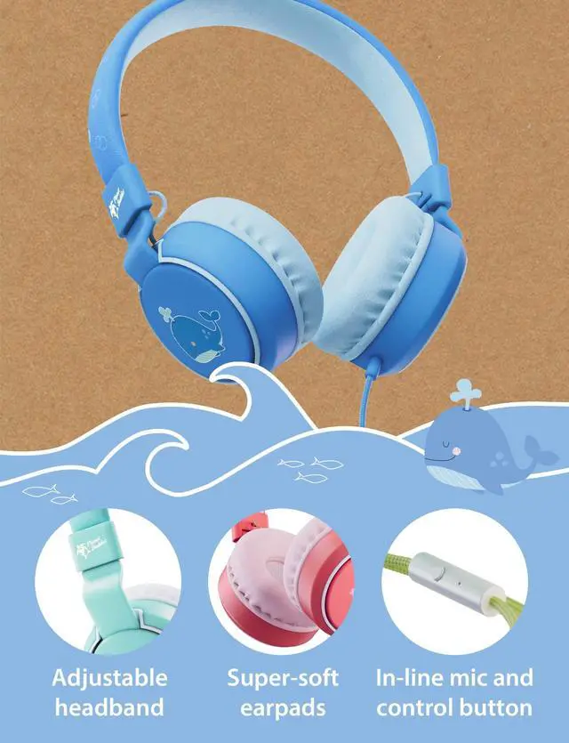 PORTABLE AND LIGHTWEIGHT: With a foldable design that fits snugly into bags and backpacks, these wired headphones with microphone in-built are the ideal travel gift for your little ones to take to friends' houses, in the car, on the bus or plane. The on-ear design of our kids headphones will help block out noises to keep your toddler entertained during long trips ^^