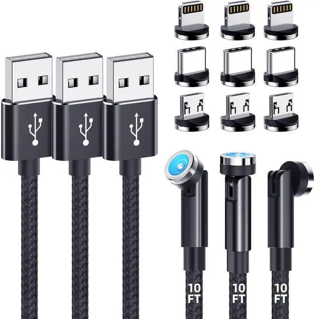 540Rotation DesignThe upgrade magnetic charging cable allows magnet tip to rotate 360 and charging head to bend 180, this convenient design allow you to find the right angle for every charging occasion. Precisely completes the magnetic connection, which improves charging efficiency and super convenient. ^^ 3-in-1 Magnetic CableThese magnetic phone charger cable equipped with 3 different types of magnetic tips which is Micro USB & Type C & i-Product. One cable can be charging most smart devices.
