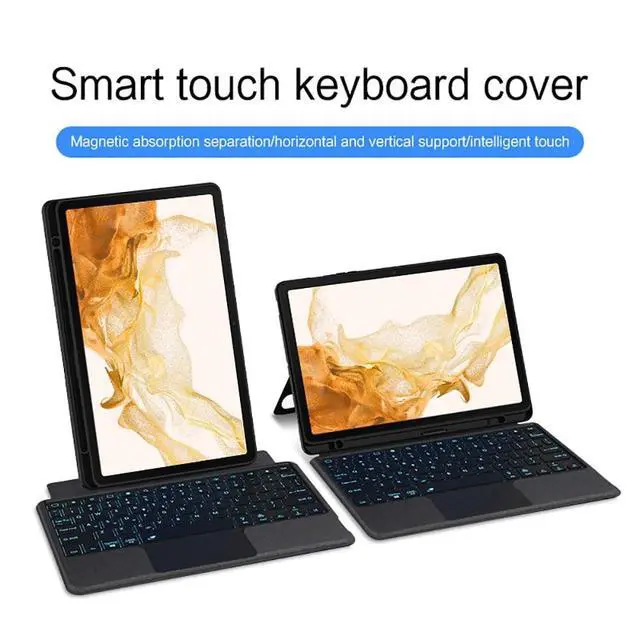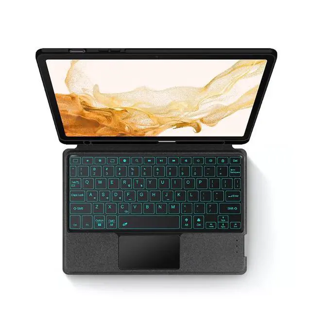 Tab S8 (Model: SM-X700/X706/X706B/X706U/X706N) 2022 released, Please kindly check the model number SM-T*** on the tabletSettingsbefore purchase. Not fit any other model device. Samsung Tablet or S Pen NOT INCLUDED ^^ Magnetic Detachable Keyboard with Protective CoverWith magnetic design, you can easily detach and reattach the back cover to tailor your device to fit your everyday needs. And you could adjust the stand angle free with back cover, adjust the hinge on the back to find your perfect position to send emails, enjoy your favorite content, and vertical support, when you video with your family and friends, fold the cover back and immdiately vertical the screen. ^^ 7 Colors Backlight KeyboardThis Galaxy Tab S7/S8 keyboard has seven backlight colors and three brightness levels. The seven backlight colors are beautiful, the three brightness models make you comfortable to type in the dark. Not only protect your eyes, but also could improve work efficiency. The full-size keycaps, function keys make you get the PC feeling type experience. ^^ Built-in TrackpadThe wireless keyboard built-in touchpad for easy scrolling, which support multi-finger function will offer a great aid when you do not have a mouse in hand, allows you to use it like a laptop, very convenient.