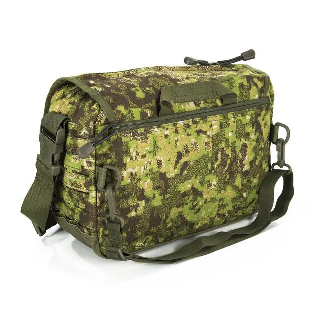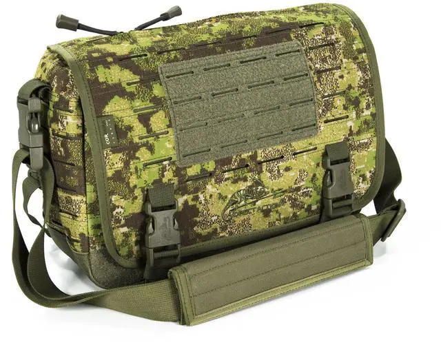 HIGH END USER - Lightweight and versatile compact messenger bag designed for Military & Law Enforcement operators ^^ PATENTED DESIGN - Unique external zipper for quick access to main compartment without lifting messenger bag flap ^^ CAPABILITY - Unique laser cut MOLLE/PALS system is lowprofile, lightweight, snag-free and non-water absorbing ^^ RUGGED DESIGN - Durable, water resistant coated Codura 500D fabric with multiple color/camo options for versitility ^^ PenCott, Mulitcam are NIR(Near-infrared) treated; Helps prevent detection with nightvison