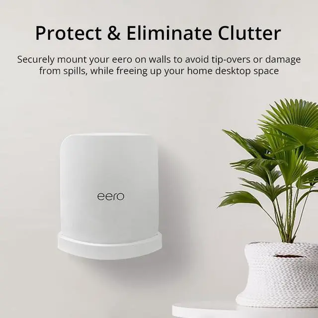 Compatible with eero Max 7 only. ^^ Easily mount your eero Max 7 router to walls with the included mounting screws, freeing up space and providing a clean look. ^^ Place your eero Max 7 in the optimal location near any power outlet for improved signal strength and maximum coverage. ^^ Made of high-quality plastic, this mount is built to last and can securely support your mesh WiFi router. ^^ Allows you to neatly wrap excess cables on the back of the router.