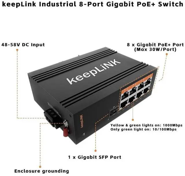^^ Redundant Power Supply: keepLiNK 8-Port Gigabit Automatic fault switching, anti-reverse connection does not damage the equipment, higher reliability, power supply sold separately. ^^ Safety &