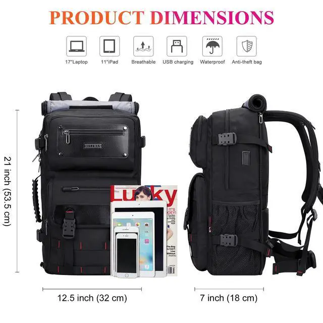 ^^ Multi Functional Backpack: This carry on backpack comes with detachable and adjustable shoulder straps, which can be hidden in a large zipper pocket on the back, enabling