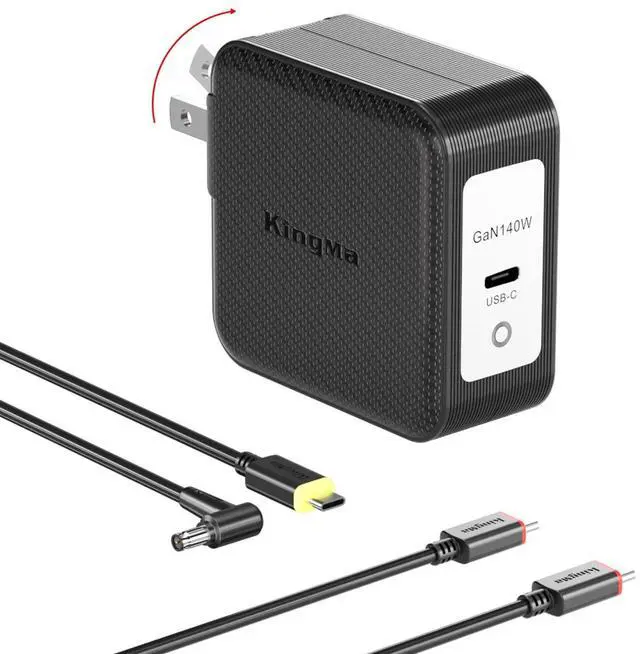 King Ma 20V/6.75A (MAX140W) Laptop GaN Charger, PD 3.1 Portable Fast Wall Charger with Foldable Plug and USB C Cable for UX501J YX/570ZD/Pro15/X1502Z/PR0551/451L BU400V PU500C and Phone/PS5