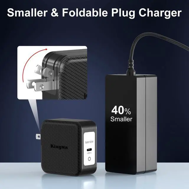 King Ma 140W Laptop GaN Charger, PD 3.1 Portable Fast Wall Charger with Foldable Plug and USB C Cable for UX501J YX/570ZD/Pro15/X1502Z/PR0551/451L BU400V PU500C and Phone/PS4/PS5