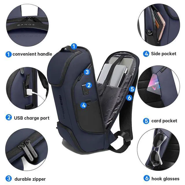 Waterproof material: Bange laptop backpack made of high-density coated oxford fabric not only waterproof but also scratch-resistant, waterproof material can protect your goods in rain day ^^
