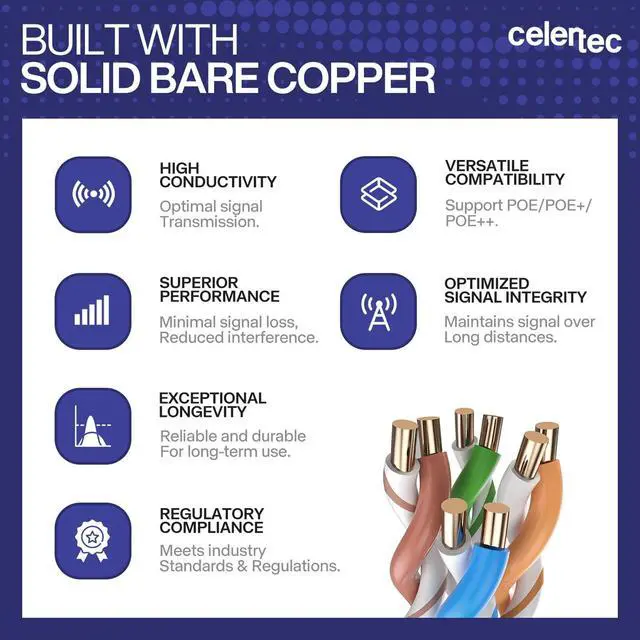 ^^ Quality Assurance: The Celertec Cat6 Plenum Cable is UL Certified and meets or exceeds industry standards. Each cable undergoes thorough testing to ensure consistent quality, backed by our dedication to customer satisfaction. Trust Celertec for reliable network performance.