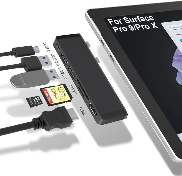 Surface Pro 9 Hub Docking Station with 4K HDMI, USB-C Thunerbolt 4 (Display + Data +PD Charging), 2*USB 3.0, SD/TF (Micro SD) SlotMeet Your Demands to Expand the Productivity of Your Surface Pro 9 and