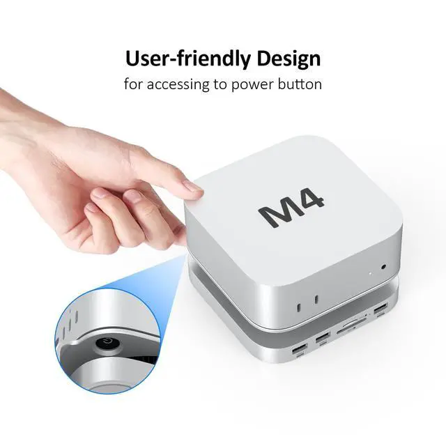 Plug-and-Play: Crafted to match Mac Minis aesthetics, this stand-hub combination is compact, requires no additional software for setup, and access to Power Button easiler leaving a small hole in the stand for the power button on the bottom of the Mac mini M4/M4 Pro. ^^