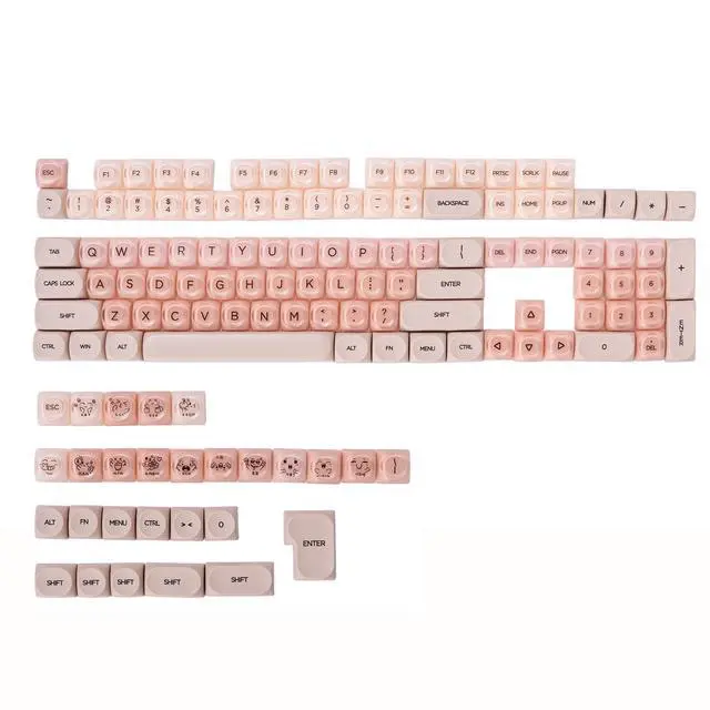 XDA but better: ptimized height (lower than standard XDA). Its surface arc fits finger curves more ergonomically, expanding contact area to reduce typing fatigue. ^^ Ultra-Comfortable TypingPremium PBT + dye-sublimation = smooth, non-slip texture. MOAs arc boosts contact comfort. Every keystroke feels soft, great for work/casual use. ^^ Widely CompatibleFits MX-stem switches. 132 keys match most US/UK layout keyboards (61/64/68108 keys). Versatile for different models. ^^ Personalized Complementary KeysCute jelly-cream complementary keys included. Mix and match to make your keyboard unique, showing your style.