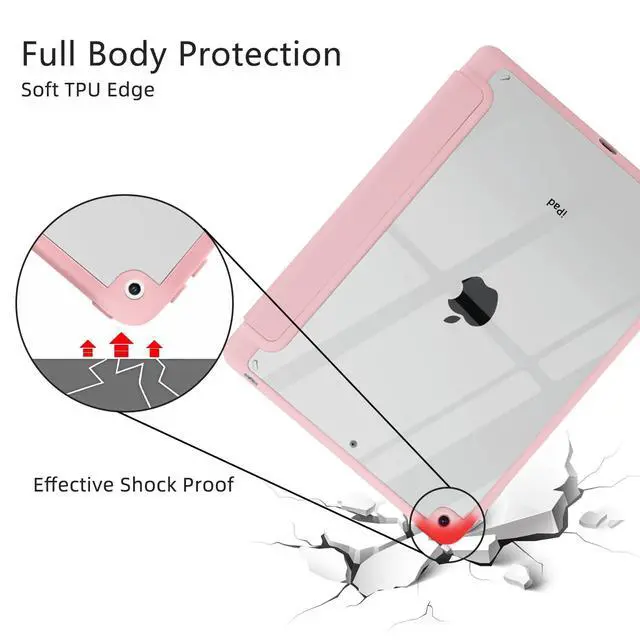 NoteThis clear tablet case only suitable for iPad 2019/2020/2021 Case 10.2" iPad 7th/8th/9th Generation Only. The pictures on the page are used to preview patterns, specific model is subject to the text description ^^ Friendly DesignThis tablet case is designed with built in Pencil Holder, keep the pencil as safe as your Pad all the time. Automatically Wake up or sleep your device with quick snap on and off the case. Easy operation and energy-saving ^^ Multiple ProtectionThis clear tablet case is very sturdy and the thickness of 1.5 mm is thin. The cutouts for the screen, speakers, camera, and ports are precisely designed, and all ports and connectors can be easily accessed without disassembly.