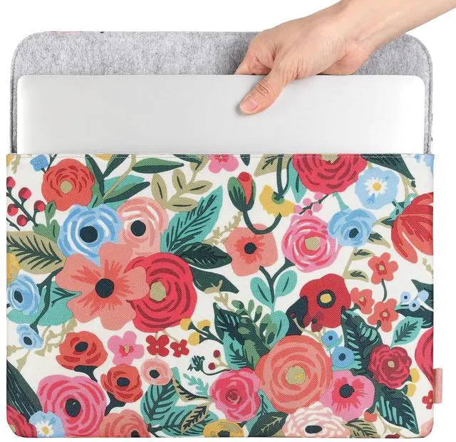 About product: This laptop sleeve made of sturdy and breathable canvas material, two pockets allows you to put more laptop accessories. The lightweight & slim design is suitable for you to put in case, backpack or use as a handbag. Soft canvas outer layer, shockproof sponge Middle layer and fluff Interior protect your Laptop against from accidental drops scratches bruises or stains.