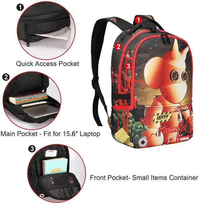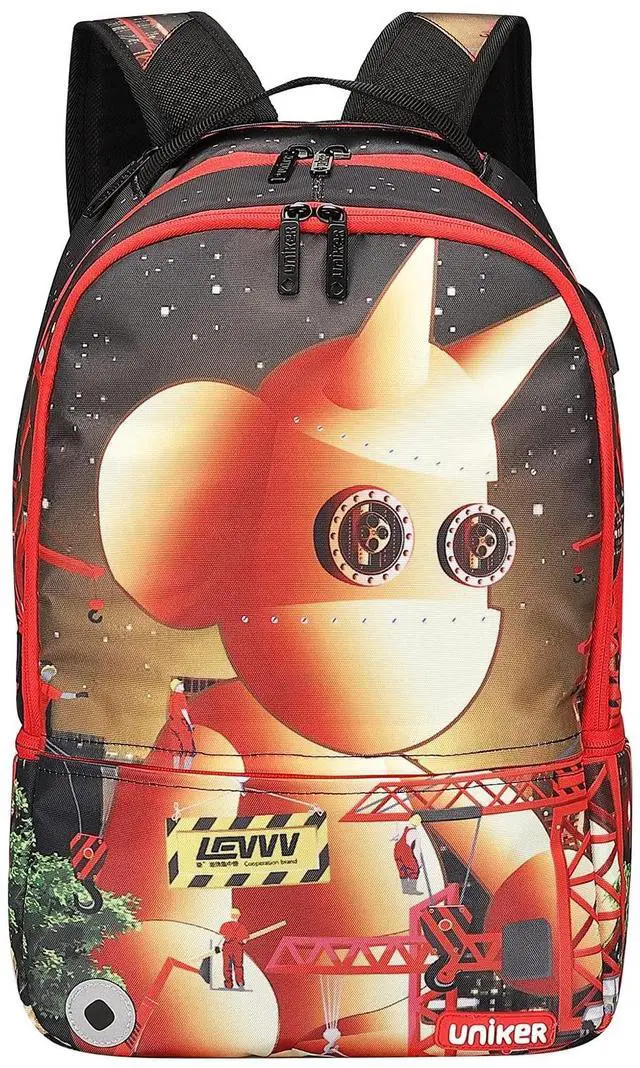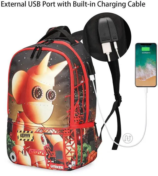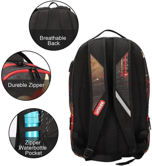 LIGHTWEIGHT AND WATER RESISTANT-Graffiti backpack, cool backpack teens for middle school, durable polyester with heavy-duty zippers, easy to clean. ^^ SMART DESIGN-Designer laptop backpack with USB charging and earphone port, you can charge your phone via connecting your own power bank and enjoy music while walking. It also has a hidden pocket right behind to handle strape on the top of backpack which is nice for carrying wallet, phone and other valuables. (PORTABLE BATTERY IS NOT INCLUDED) ^^ THE PERFECT BOOKBAG FOR TEENAGERS-School backpacks for boys and girls with graffiti picture.