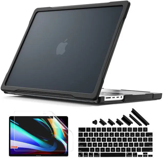 Box Includes: 1x Carbon Shield Case, 1x Screen Protector, 1x Keyboard Cover, 1x Port Dust Plugs. Comprehensive 360 protection right out of the box.