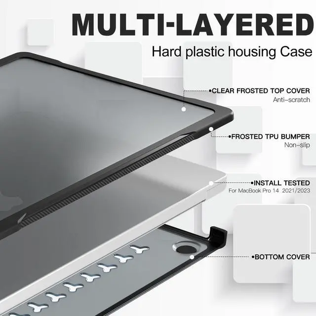 IMPORTANT: To ensure maximum corner protection, the side bumpers are thick. This means it works perfectly with cable adapters, but IS NOT compatible with flush-mount dual USB-C hubs that sit flat against the laptop. ^^ CRITICAL MODEL CHECK & BUNDLE STOP: Custom molded ONLY for MacBook Pro 14" 2025 2024 2023 2021 (model number: A3434/A3112/A3401/A3185/A2918/A2992/A2779/A2442). Check the model number on the bottom of your MacBook. Do not force onto other models.