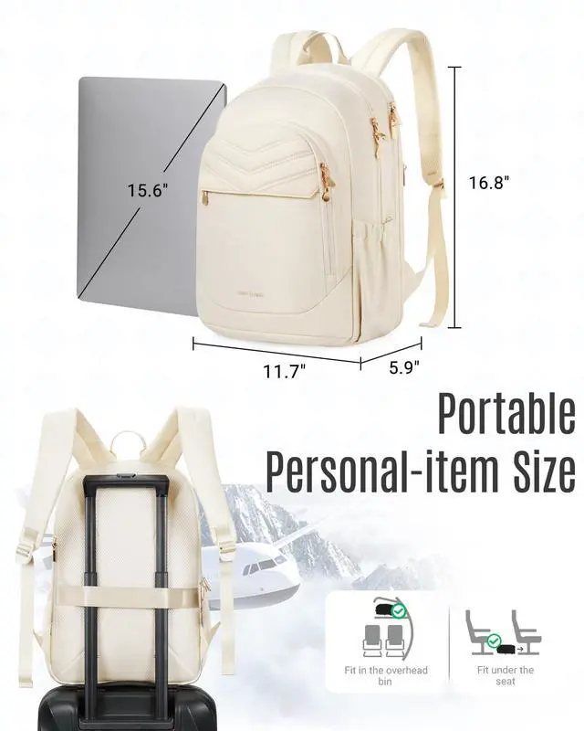 Measuring 16.8 x 11.7 x 5.9 inches and weighing 1.98 lbs, this travel backpack is flight-approved carry-on baggage, fitting easily under the airplane seat or in the overhead bin ^^ Enhanced SecurityBackpack features include an zipper for the computer compartment and a hidden back pocket for your valuables ensuring peace of mind while on the go ^^ Versatile UseThis women's backpack effortlessly transitions from a laptop backpack to a work backpack, travel backpack, and backpack, making it perfect for weekend getaways. It's an ideal gift for women who value both functionality and style in their daily lives.