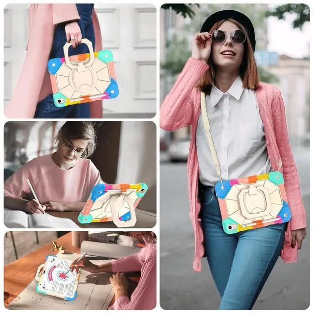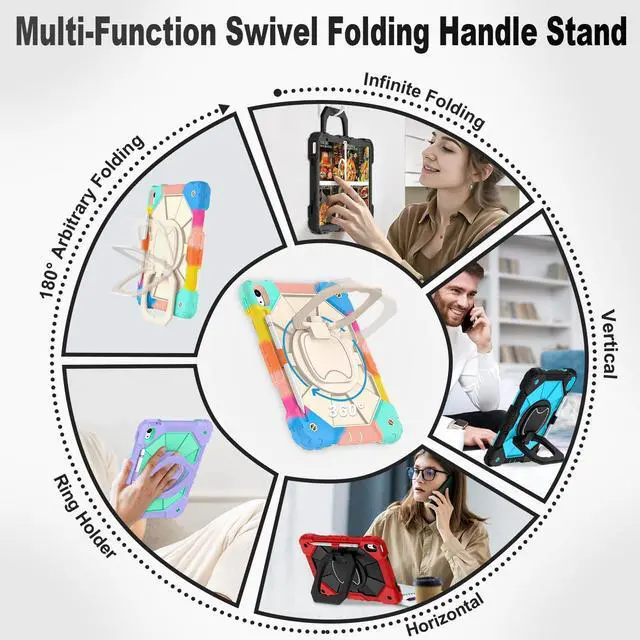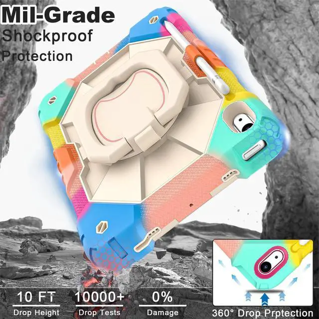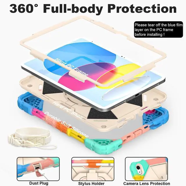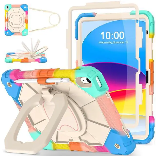Number: A3356/A3355/A3354/A2777/A2757/A2696). Please check your ipad to avoid the incorrect model number. ^^ 360 Rotating Stand & Folding HandleiPad 10 case with a multifunction handle that also rotating 360 and folds 180 to give you multiple angles between 30-80 degrees of horizontal or vertical orientation for easy viewing, typing or drawing. ^^ Pencil Holder & Adjustable Shoulder StrapiPad 10th gen case with pencil holder. Also offers adjustable shoulder strap, allow you use or carry much easier, perfect for a variety of people and occasions. ^^ Mil-Grade Drop ProtectionThe ipad 10.9 inch 10th gen case is made of shockproof PC and soft silicone, upgrad grade thickened corners & shock-proof design, with built-in screen protector to prevent daily scratches caused by rough surfaces or sharp objects and raised edges to protect camera, super shock absorption provides full body protection! ^^ Precise CutoutsiPad 10th generation kids case perfect fit all controls to easily access all iPad functions without taking out of the case. Great holiday/birthday gift for family and friends! ^^ Best ServiceIf you have any questions about this ipad 10th generation case for kids, please feel free to email us, we will provide you with the fastest and best solution!