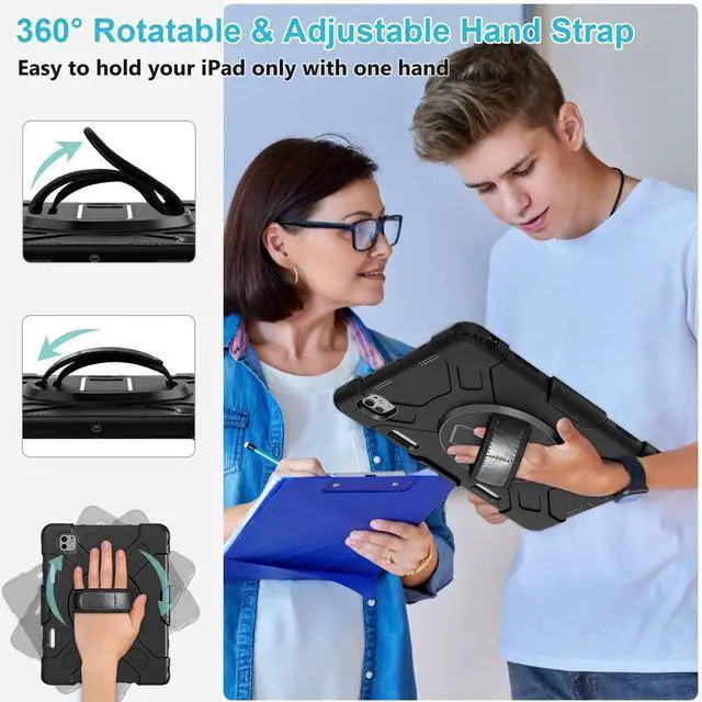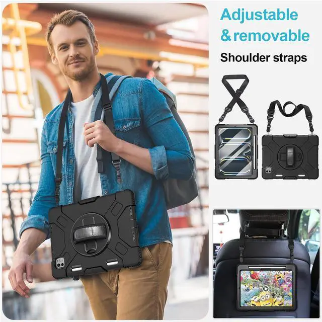 DETACHABLE SHOULDER STRAP: The adjustable hand strap offers easily grip and comfortable hold, it is a must feature when you show your iPad to others. The detachable and adjustable shoulder strap can help you carry your iPad more securely during hiking, traveling other outdoor activities. That can also be used to attach your ipad to the car seat ^^ BUILT-IN APPLE PENCIL HOLDER + PRECISE CUTOUTS +