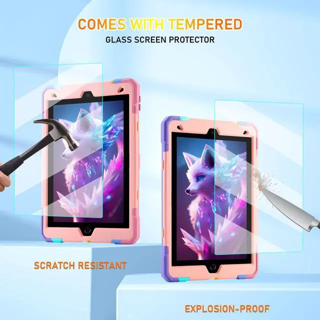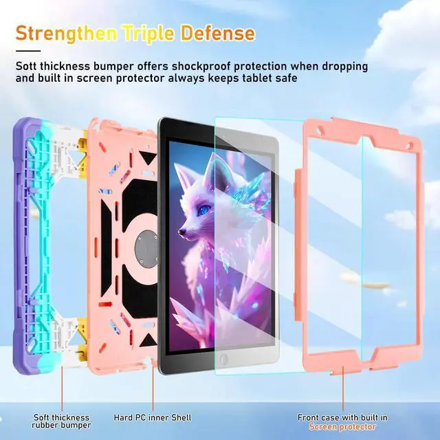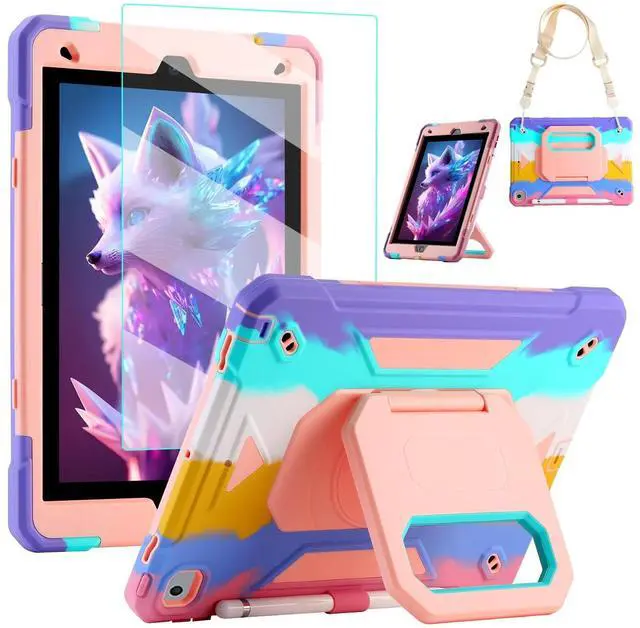 Multi-Angle Magic Stand: 360 rotating kickstand & 180 folding handle for KCJ 10.2 inch ipad case (9th/8th/7th Gen). Perfect for kitchen, bedroom, or on-the-go use. Adjust to ideal angles for watching, typing, or drawing ^^ Includes 9H Tempered Glass
