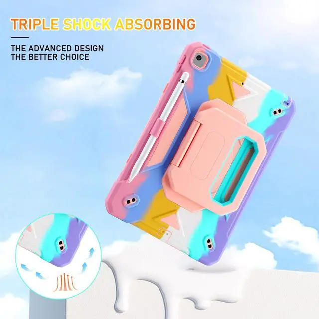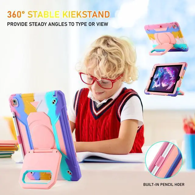 Pencil Holder & Shoulder Strap: KCJ 9th generation ipad case includes a 360 rotating stand, an adjustable shoulder strap, and a built-in holder for the Apple Pencil (1st Gen). The KCJ shoulder strap lets you hang your iPad in convenient spots like the kitchen, car, or while traveling. It also makes one-handed use easier and provides a solution for storing your Apple Pencil. Perfect for drawing, note-taking, outdoor activities, or entertaining back-seat passengers during trips ^^