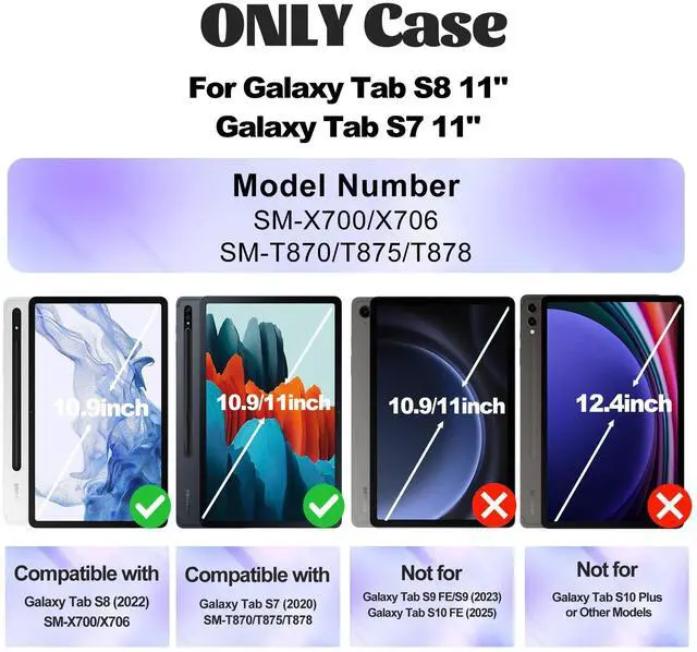 Compatibility S8 2022/S7 2020: Designed for Samsung Galaxy Tab S8 11-inch 2022 (Model: SM-X700/SM-X706) and