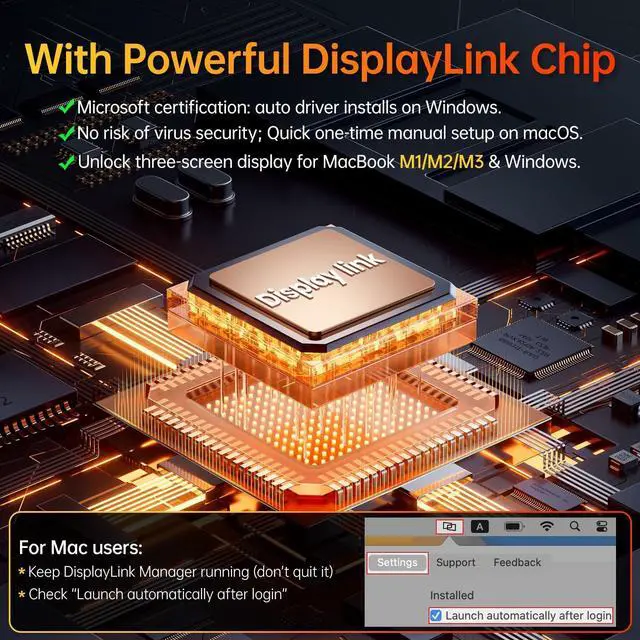 Secure Installation: The VisionOwl stacked dual-screen monitor supports quick setup for both Windows and macOS. Windows devices automatically install the Microsoft-certified DisplayLink driveron Microsoft's secure whitelistfor a safe, stable, and seamless plug-and-play experience. macOS users can install the official DisplayLink driver easily, with no impact on system security. ^^ Wide Compatibility with All Essential