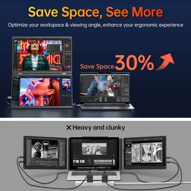 Flexible Viewing Modes: Crafted with a full-metal body for enhanced durability, cooling performance, and a refined professional appearance. The lightweight 3.5 lb design folds 360 and supports both landscape and portrait use. Includes a 120 adjustable desktop kickstand, VESA mount support, and a flip-able upper display for comfortable multi-angle viewing during long work sessions. ^^ Travel-Ready Protection and