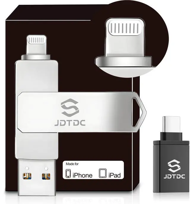 . iPhone Memory stick supports all iOS devices with iOS 9 or above. Equipped with Lightning, USB-C, and USB-A connectors, this 3-in-1 iPhone flash drive works seamlessly with iPhone, iPad, Android, and PC. Just plug it in Android and computers connect instantly, no extra steps. iPhone users can easily manage files through the free JD Drive app, simple and secure.