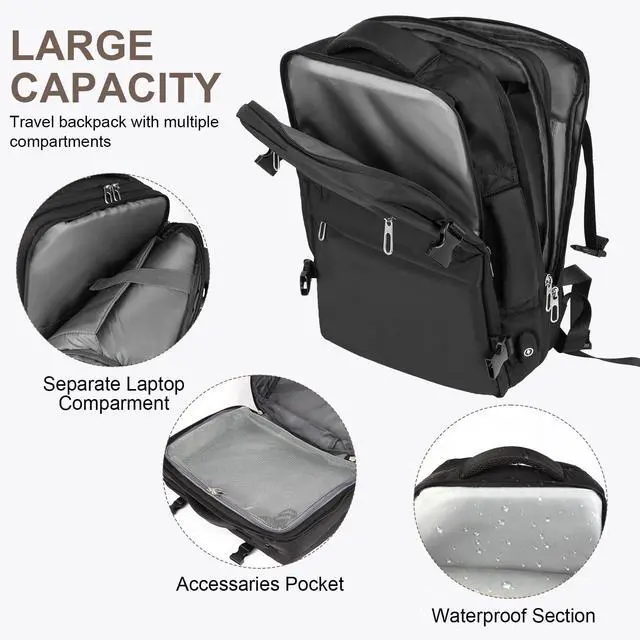 FLIGHT APPROVED: Travel backpacks 180 degree zipper closure helps you pass through the security check quickly. Fits overhead and under the seat. This carry on backpack make your journey more enjoyable and convenient. ^^ MULTIPURPOSEThe big backpack is perfect for indoor, outdoor activities. Served as durable large backpack business work bag, large laptop bag or spacious college backpack, you can use it at anywhere for International travel, daily use, camping, hiking and overnight trip. It is best gift for family and friends.