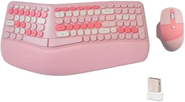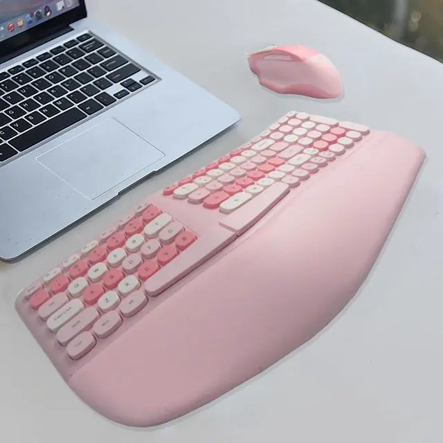 Wireless Ergonomic Keyboard and Mouse Combo with PU Wrist Rest, Carpal Tunnel Keyboard, 2.4G Colorful Split Ergo Keyboard, Comfortable Natural Typing, Compatible with PC/Laptop (Pink)