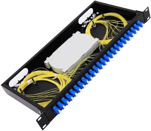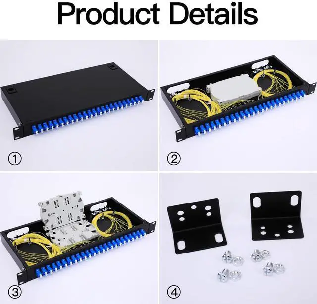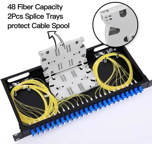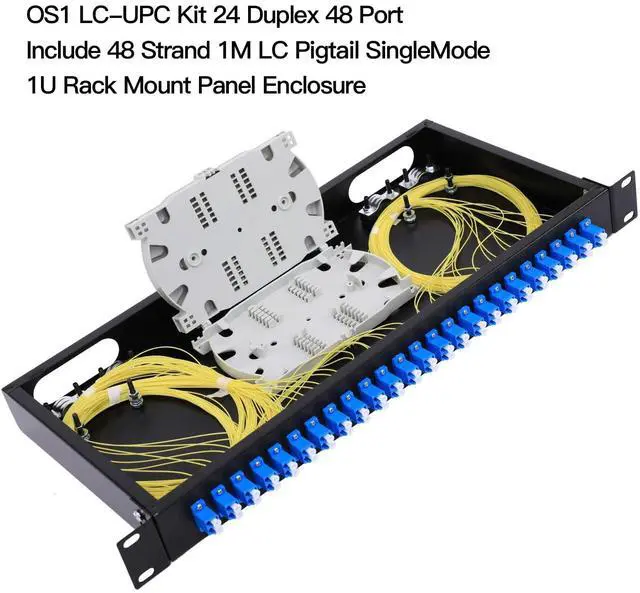 Rack Mount LC-OS1 Kit LGX Panel Fiber Enclosure - Set of Accessories is Complete Include 2Pcs Splice Trays 48 Strand LC SingleMode Pigtail + 24 Duplex Fiber Couplers, The Optical Fiber Couplers is Configured and Fiber Pigtail cables are inserted neatly. Fits 19 inch Rack Cabinets-Easy to Use1. Fiber termination box features a completely secured fiber enclosure space. No other fiber optic box blends this well into a wiring closet and provides this level of security in a wall mount fiber enclosure. Fiber enclosure wall mount solutions need to be flexible and allow for all types of fiber termination.