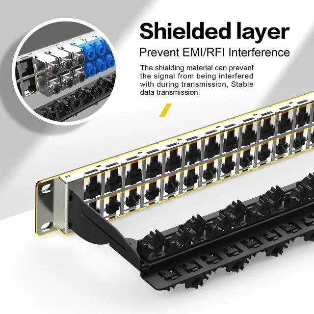 Blank Keystone Patch PanelA 48 port blank patch panel offers a versatile platform to organize and manage Ethernet connections. Supports standard sized keystone jack, such as HDMI keystone, RJ45 keystone, USB keystone, fiber keystone, 3.5 mm keystone, keystone jack insert and more. ^^ Durable ConstructionConstructed from sturdy materials such as steel, these panels ensure durability and long-term reliability. They are designed to withstand regular use and provide a stable platform for networking components. ^^ Easy InstallationFeaturing a standard design, installation is straightforward. Simply mount the panel on a compatible rack or enclosure using screws, and then populate it with keystone jacks, couplers, or modules as required.