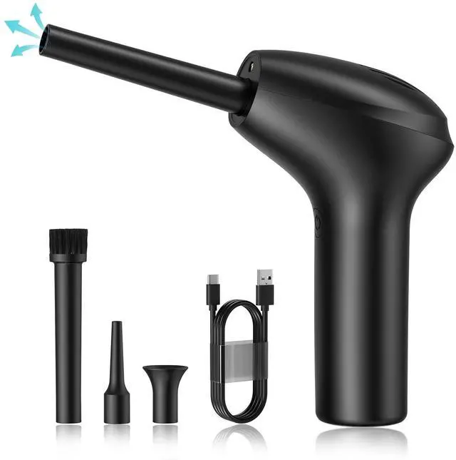 (If you lost the charging cord, just use your Android cellphone's) With a fast charging time of around 4 hours. It can be charged by computer, mobile power, car charger, adapter. ^^ Comfortable & Handy&LED Light DesignThe portable pc duster adopts a full-length grip design, which makes the grip more comfortable. Built-in LED light allows you to see small dark corners for better cleaning. Electric Air Duster Instead of Compressed Air Cans. ^^ How to useSimple to use, it