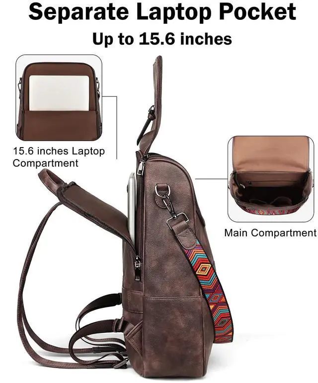 Independent Laptop Compartment: This is a leather laptop backpack that can store laptop less than 15.6 inches. The independent laptop zipper compartment provides better protection for the laptop. The zipper with a large opening at the top is easy to access and store the laptop, making it very convenient to store or take out, without disturbing the storage of other items.