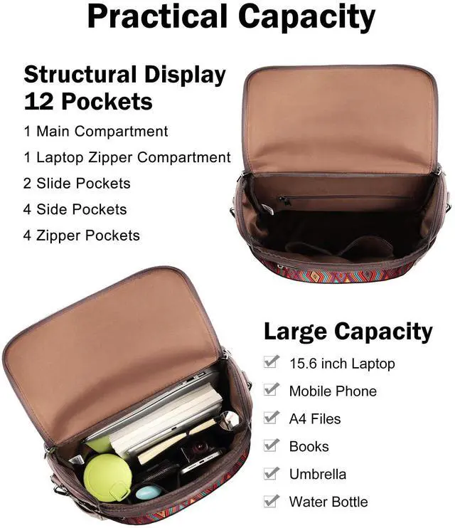 ^^ Shoulder Backpack: This backpack laptop bag for women with a detachable strap can be converted into a shoulder backpack or handbag to meet the needs of different occasions. So the leather laptop backpack with laptop sleeve suitable for a variety of occasions, such as shopping, work, travel, dating, camping, dancing or hiking, for 2-3 days business trip.