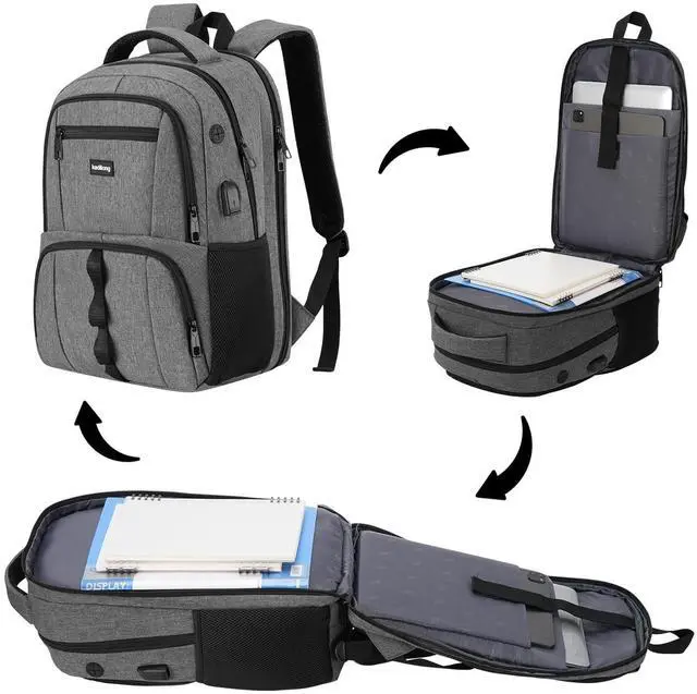 ^^ PRACTICALITY OF TRAVEL: The travel backpack airline approved can be freely unfolded 90-180 degrees, allowing you to quickly pass through airport security and keep things tidy. The luggage strap on back allows the back pack to slip over the handle of any rolling luggage for hands-free transport.
