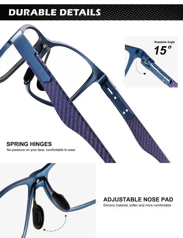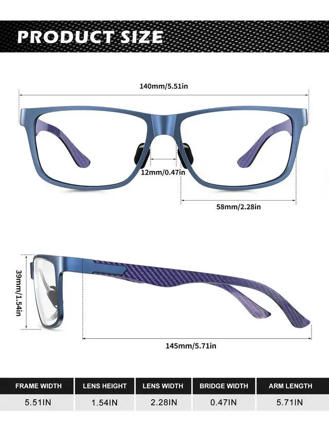 ^^ Premium Temple Material: With superior Al-Mg and carbon fiber composite temple, this type of blue light blocking glasses for men is ultra-light than pure metal frame, also more sturdy. No more worries about broken temples. As more suitable for anyone who often work or play games by the computer, do not miss this pair of practical and classic blue blocker glasses. ^^ Take Care of