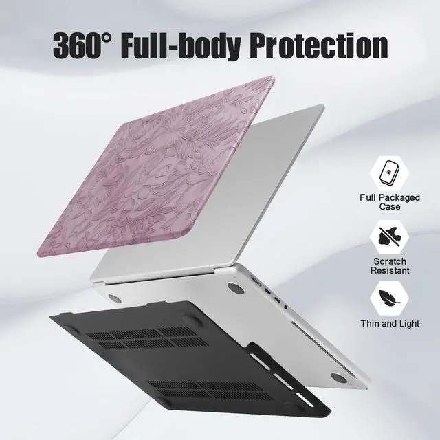 PREMIUM MATERIAL: Embossed Floral Mac Book Pro 16 Case is made from premium, scratch resistance pu leather and impact resistance pc material, the surface is covered with embossed leaves and floral, forming a protective layer similar to "ultra-thin armor", it can effectively protect your device from fingerprints, scratches, shocks, dents and other damages. Coming with silicone keyboard cover to prevent keyboard from food crumbs, liquid spills and key wear ^^
