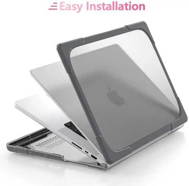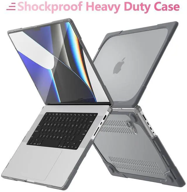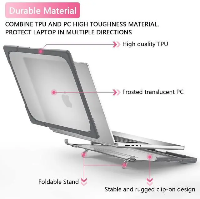 MILITARY-GRADE HYBRID ARMOR- A true heavy-duty hybrid fortress built for users who carry their MacBook everywhere. Features a scratch-resistant matte PC back paired with a thick, shock-absorbing TPU bumper. Reinforced Airbag corners disperse impact from real-world drops, backpack pressure, and daily accidents protection designed to survive travel, not just desk use. ^^ ALL-IN-ONE ERGONOMIC WORKSTATION Ditch your bulky metal stand. The built-in Invisible Foldable Kickstand raises your screen to a comfortable eye level, reducing neck strain during long work, study, or coding sessions.