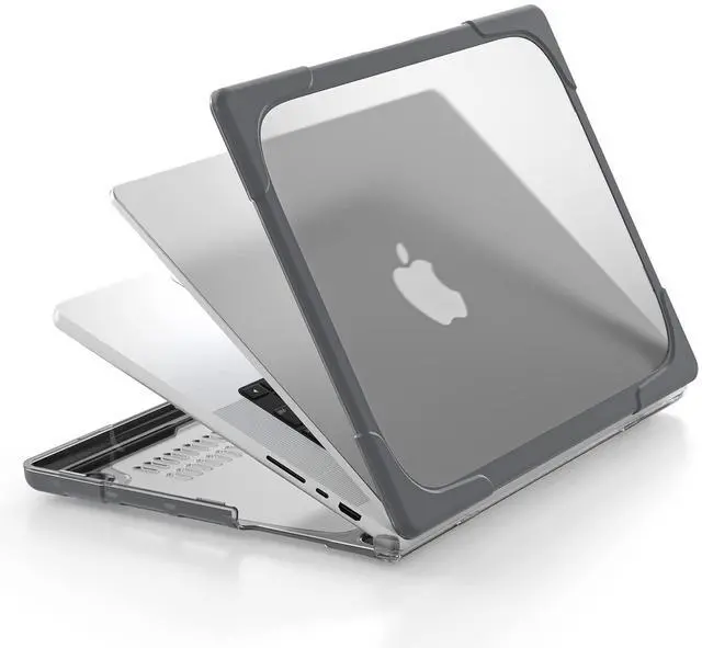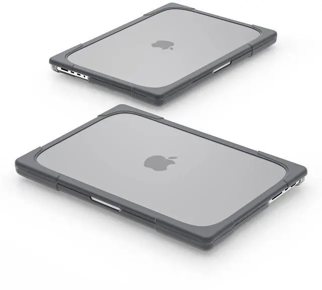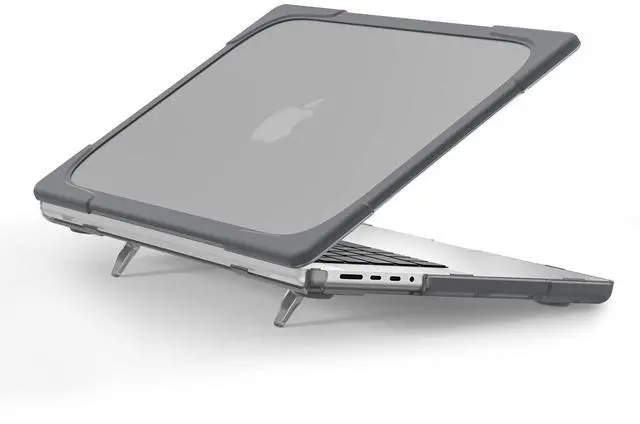 MILITARY-GRADE HYBRID ARMOR- A true heavy-duty hybrid fortress built for users who carry their MacBook everywhere. Features a scratch-resistant matte PC back paired with a thick, shock-absorbing TPU bumper. Reinforced Airbag corners disperse impact from real-world drops, backpack pressure, and daily accidents protection designed to survive travel, not just desk use. ^^ ALL-IN-ONE ERGONOMIC WORKSTATION Ditch your bulky metal stand. The built-in Invisible Foldable Kickstand raises your screen to a comfortable eye level, reducing neck strain during long work, study, or coding sessions.