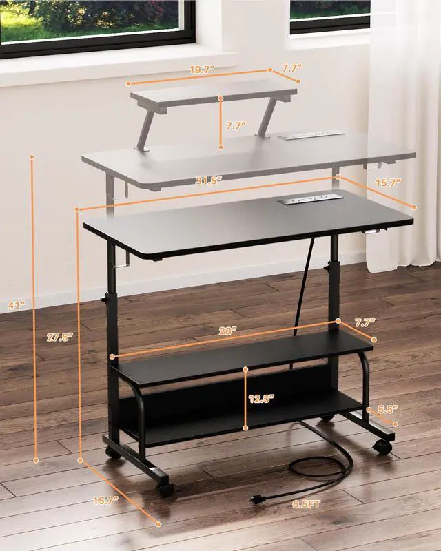 Power Outlets: Besiost rolling standing desk equipped with 2 AC outlets and 3 USB ports and 6.5 ft long power supply cord provide the charging convenience for phone, laptops, AirPods, etc. Velcro tape make your device's cords tidy. ^^ Rolling Stand Up Desk with