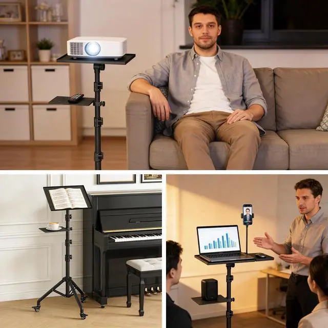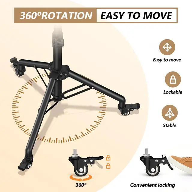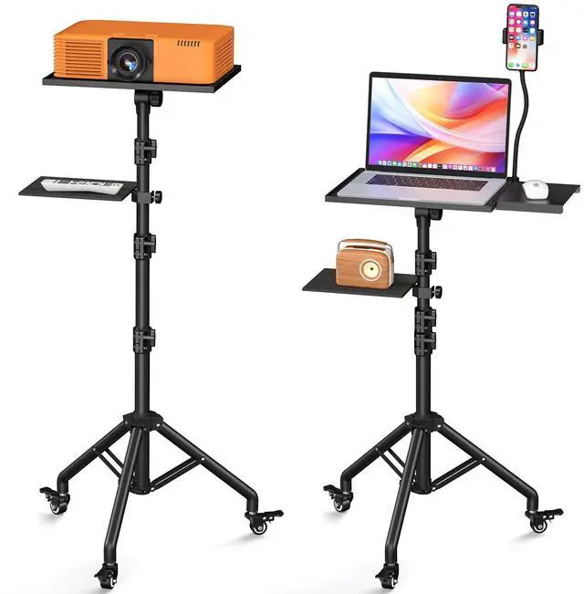 Wheels: This versatile projector tripod features three high-quality, silent casters that swivel 360 for smooth movement. All casters are lockable for enhanced safety and can be removed for stationary use, making this laptop tripod stand adaptable to various settings ^^ Heavy