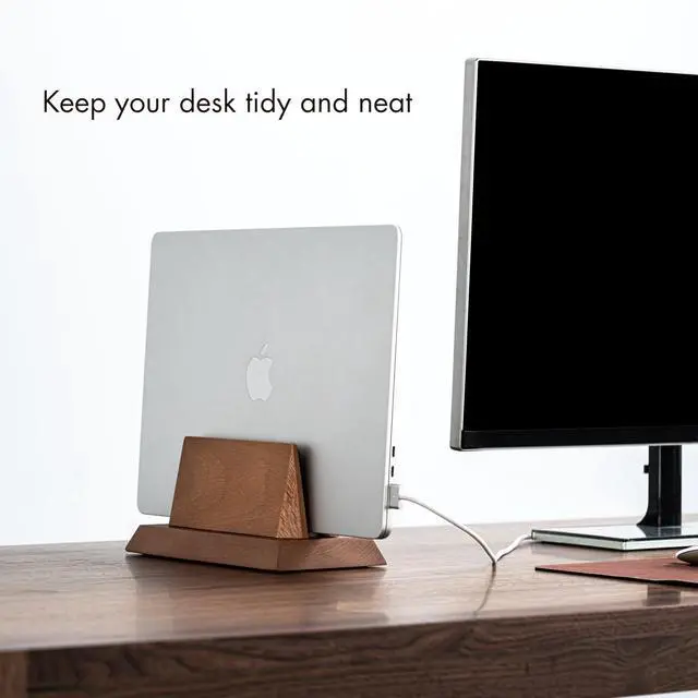 Solid Wood Build Natural wood construction for durability and elegance. ^^ Space-Saving Design Vertically stores your laptop to free up desk space. ^^ Soft Interior Lining Gentle on your device, tough on scratches. ^^ Universal Fit Securely holds most laptops and ultrabooks. ^^ Stable & Balanced Weighted base ensures a firm, no-tip grip.