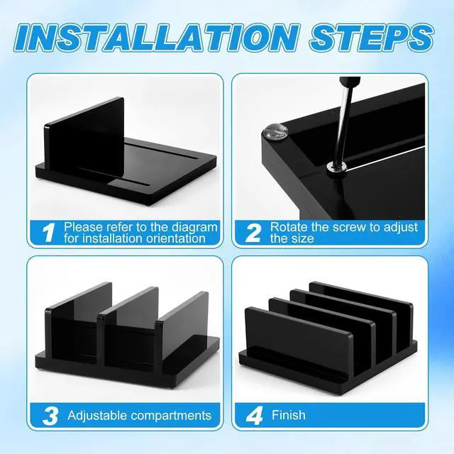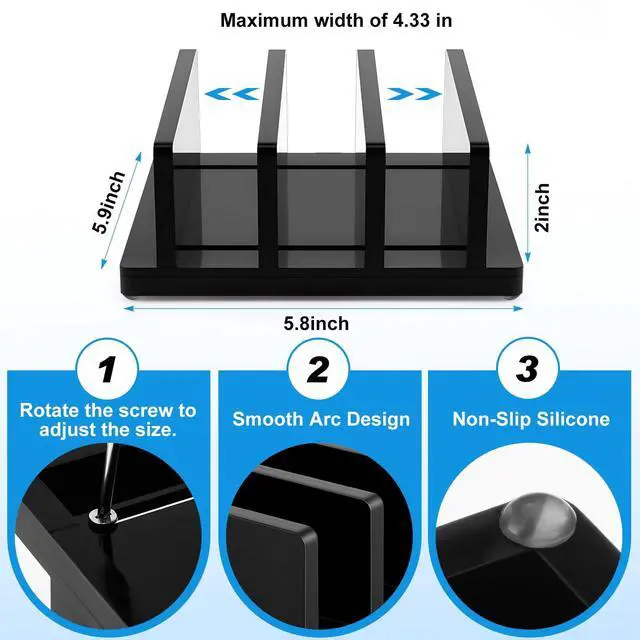 Adjustable Compartments: there are 3 slots, which can be adjusted to a maximum width of 4.33 inches; You can adjust the size of the slots according to your needs; Please read the installation step diagram and install in the direction indicated in the picture ^^