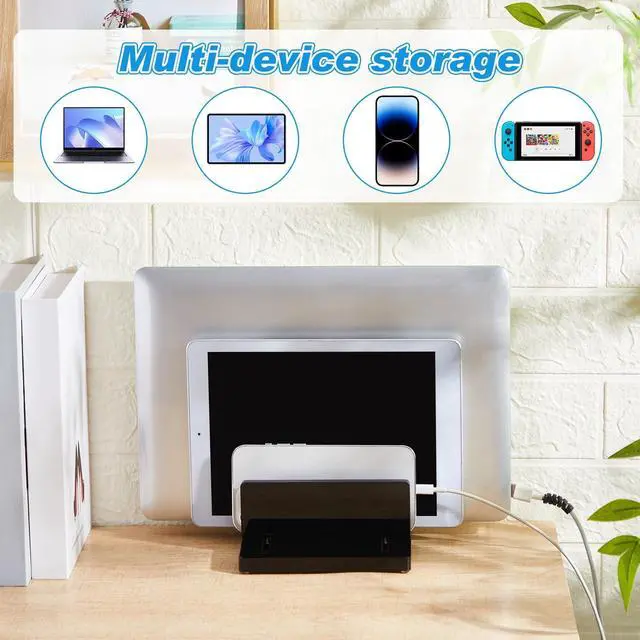 Wide Application: this 3 slots laptop stand is suitable for most laptops and is suitable for home, office and school use; Effectively save desktop space, keep the workspace tidy, and maximize desktop utilization ^^ Easy to