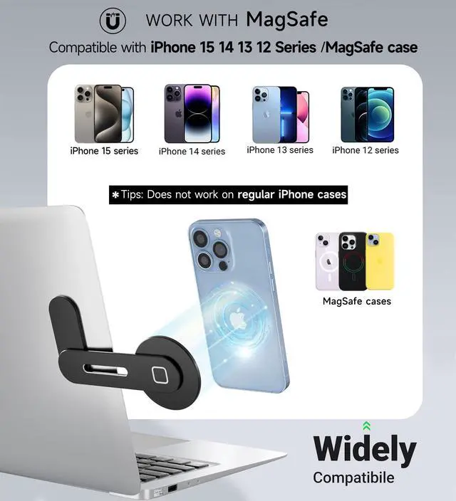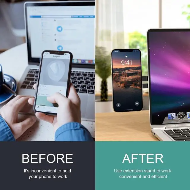 NEW UPGRADE-Powerful upgraded phone holder, enjoy a dual-screen set-up with your phone and laptop on eye level, say bye to strained necks and missed messages, multitasking has never been easier. ^^ WIDELY COMPATIBLE-Specifically designed for your iPhone 13 Mini 13 Pro Max iPhone 12 12 Pro Max, iPhone 12 Mini, and also compatible with all cell phones by installing the auxiliary metal ring. ^^ HIGH-QUALITY-Made from premium aluminum alloy via frosted layer processing this laptop holder has been built to last. The built-in powerful magnet allows you not to worry about your phone slipping off.