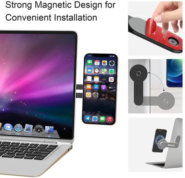 ^^ EASY INSTALLATION-Simply attaches the magnetic phone mount with the supplied adhesive patch to the top of your laptop or any other surface for the ultimate dual-screen experience. ^^