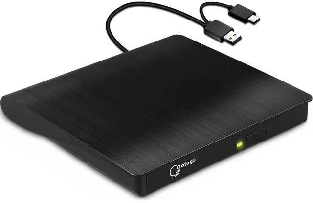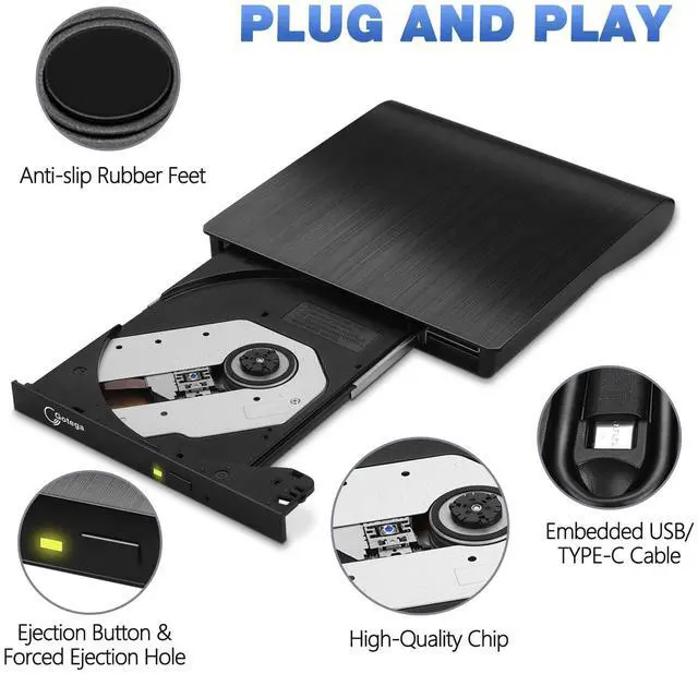 - The built in USB-C & USB 3.0 connectors of the disk drive are built into the cable so there's no possibility of losing it. The cd burner for laptop with stable performance, sleek pleasing form factor, and low-noise is portable and won't get your precious disks stuck.