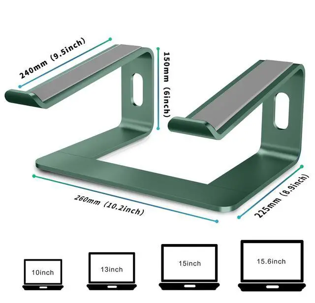 Orionstar Laptop Stand Aluminum Laptop Riser Compatible with Mac MacBook Air Pro 10 to 15.6 Inch Notebook Computer, Ergonomic Elevator Holder (Green)